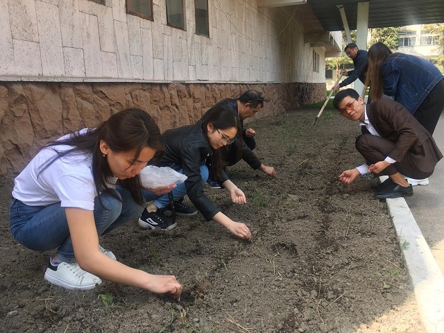 4/22/2019First-year students of the Faculty of History, Archeology and Ethnology, together with faculty memebers in the framework of the KazNU Green Campus project, planted flowers on the territory of campus, thereby implementing one of the best initiatives of the university.