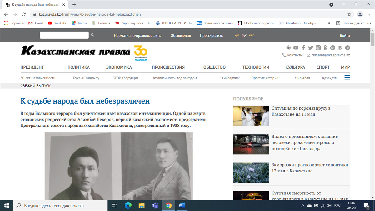 - Issues of the liberation struggle of the Kazakh and Turkic peoples in the contemporary research.