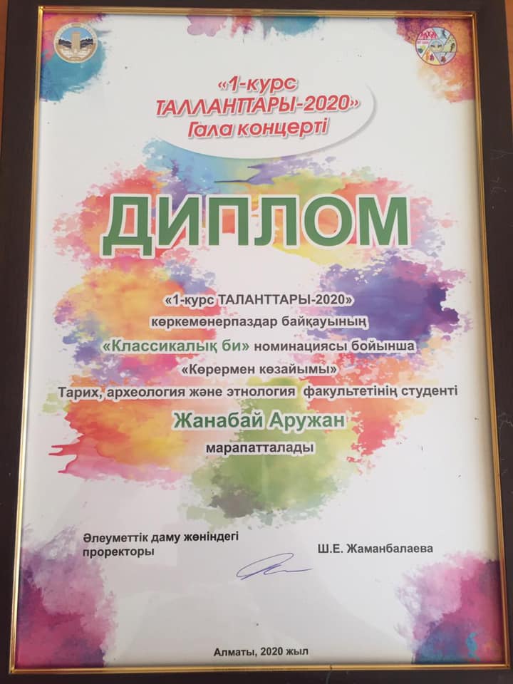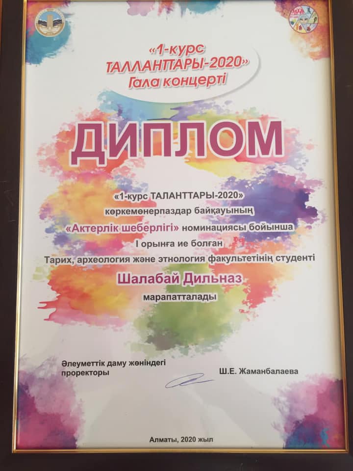 In the contest Talents of the 1st year -2020 students of our faculty won prizes in the category "Acting skills" 1st place: shalabay Dilnaz. "Folk dance" 1st place and "audience award" for classical dance-zhanabay Aruzhan! 2nd place in the category "young composers& 10/30/2020 Read more >>