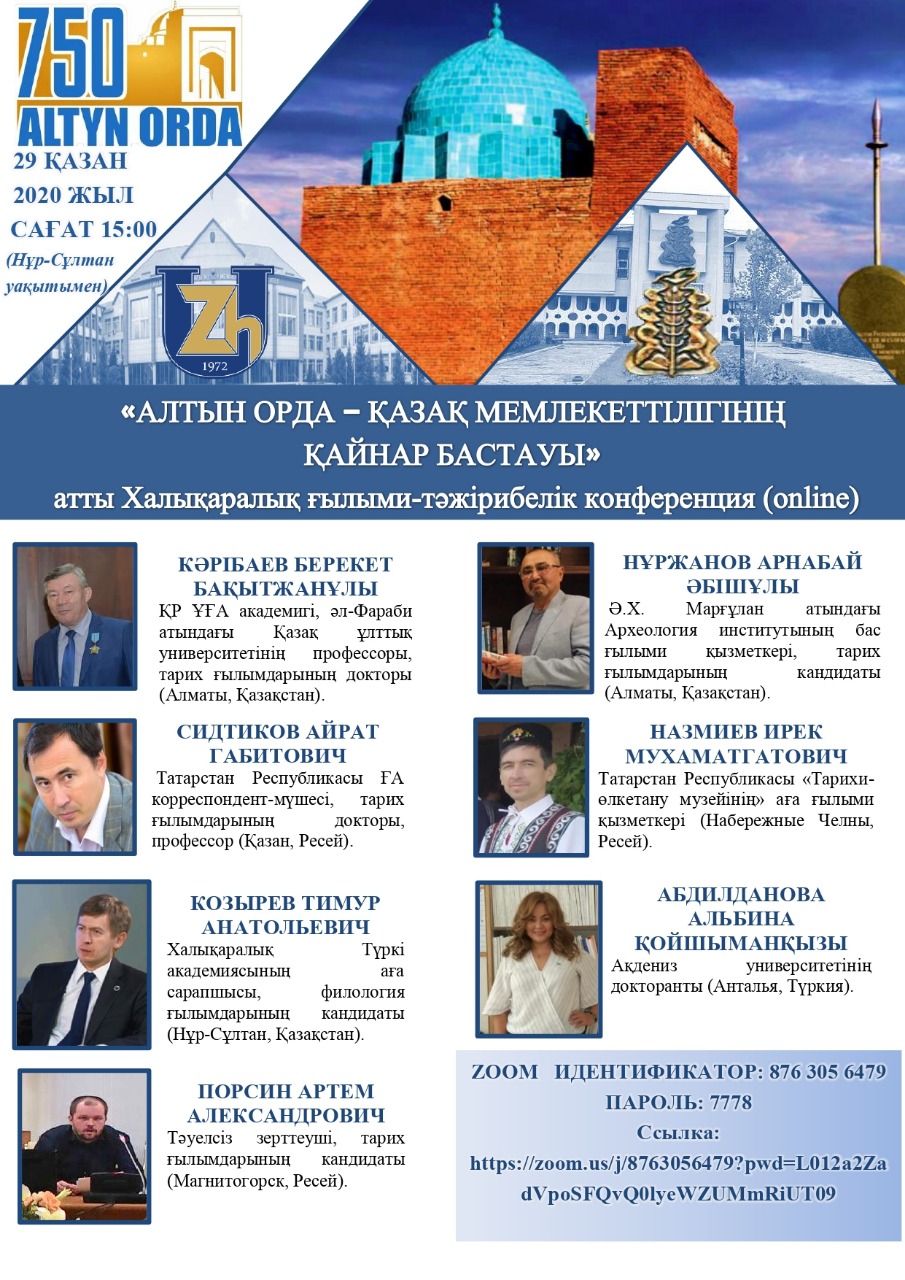 Head of the Department of history of Kazakhstan, doctor of historical Sciences, Professor B. B. Karibayev took part in the online conference "Golden Horde-the origins of Kazakh statehood". 10/29/2020 Read more >>