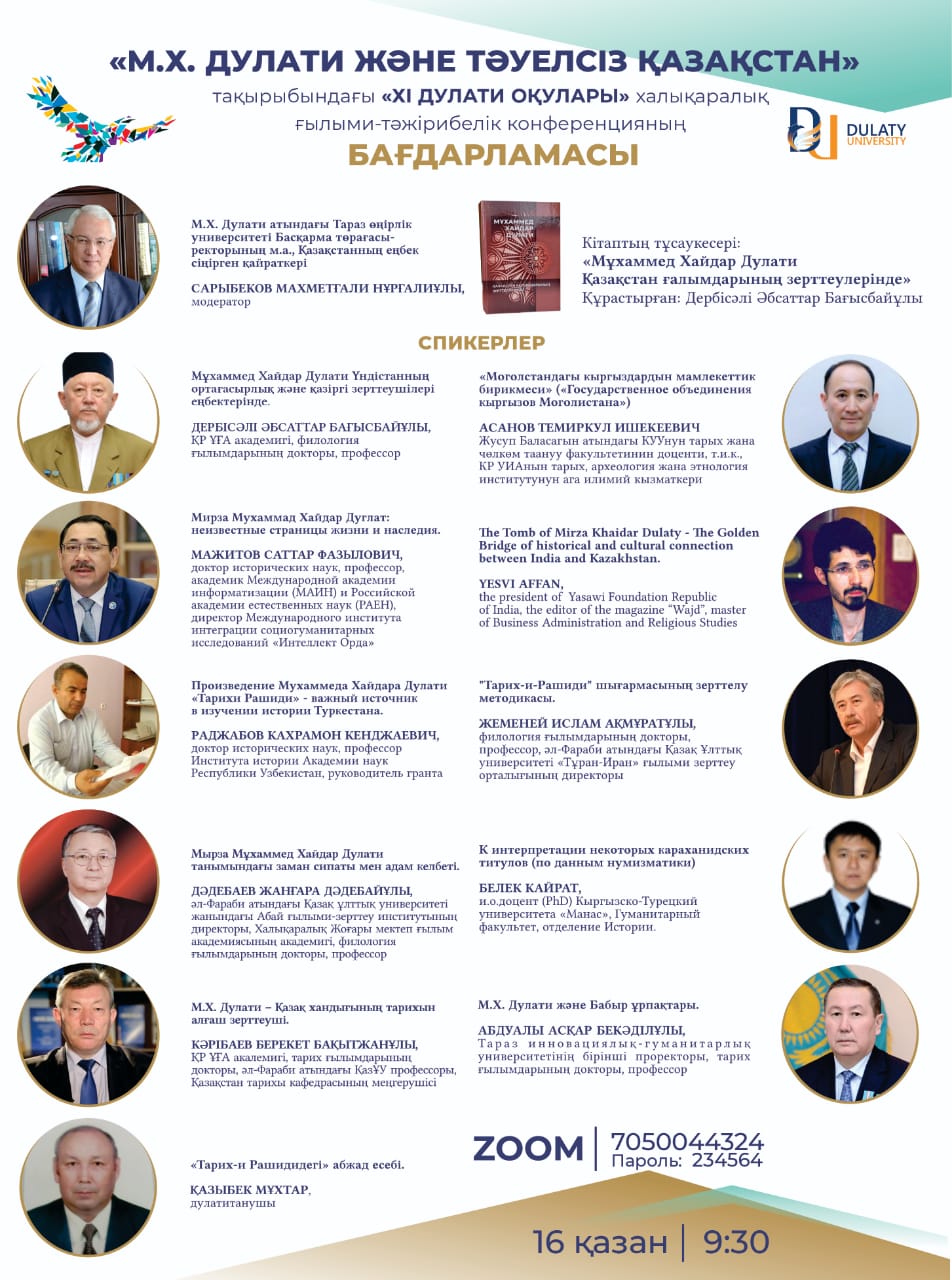 Head of the Department of history of Kazakhstan, doctor of historical Sciences, Professor B. B. Karibayev took part in the online conference " XI Dulati okulary" 10/16/2020 Read more >>