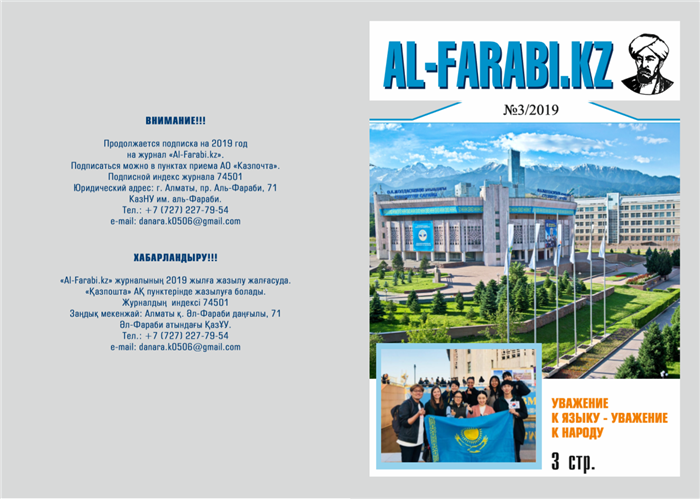 Welcome to the pages of the magazine for students from the leading national university of the country – the magazine "Al-Farabi-kz".