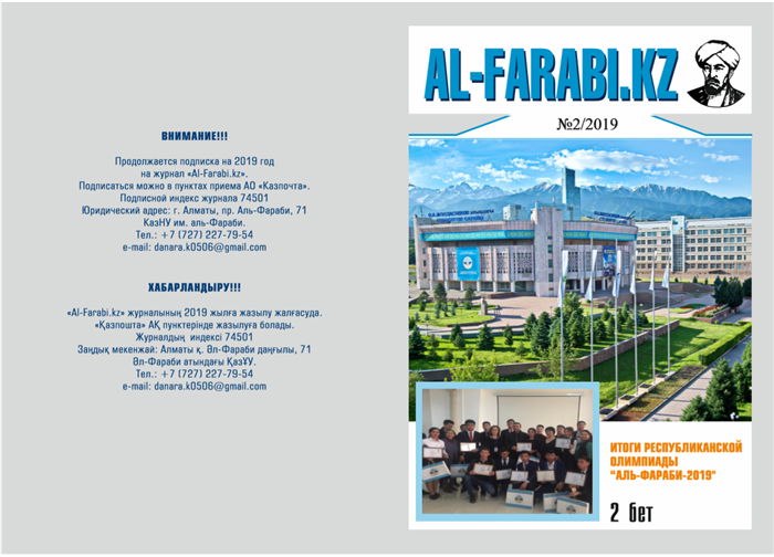 As one of the most effective ways of improving the quality of education, as well as identifying and training the future elite of our country, today it is considered profile training of senior pupils. This task is intended to serve as scientific-educational magazine for high school students "Al-Farabi.kz", which is available since 2012 at al-Farabi KazNU. The main thematic direction of the publication: in-depth study and specialized training of students of humanitarian and natural-scientific subjects. Language of publication: Kazakh, Russian. Periodicity 1 time per quarter.