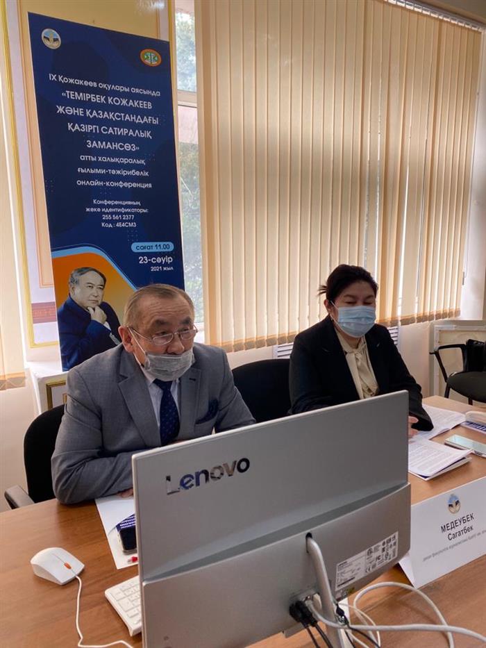 Today, April 23, 2021 at 11.00 in the auditorium named after E. Shaimerdenov (214) of the Faculty of Journalism of the Al-Farabi Kazakh National University, within the framework of the IX Qozhakeev readings, a scientific and practical online conference "TEMIRBEK QOZHAKEEV AND THE MODERN SATIRIC WORD OF KAZAKHSTAN" was held. Dean of the Faculty of Journalism Sagatbek Medeubekuly made an introductory speech, who then gave the floor to the satirist, laureate of the International Literary Prize "Alash" Kopen Amirbek.