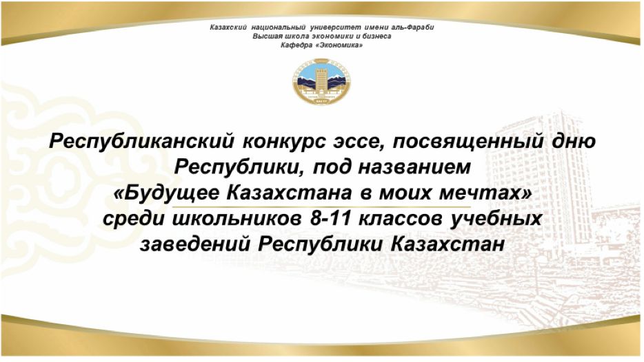 11/3/2022From October 13 to October 22, 2022, the Department of Economics of the Higher School of Economics and Business held a republican essay competition dedicated to the Republic Day, entitled "The Future of Kazakhstan in My Dreams" among schoolchildren of grades 8-11.