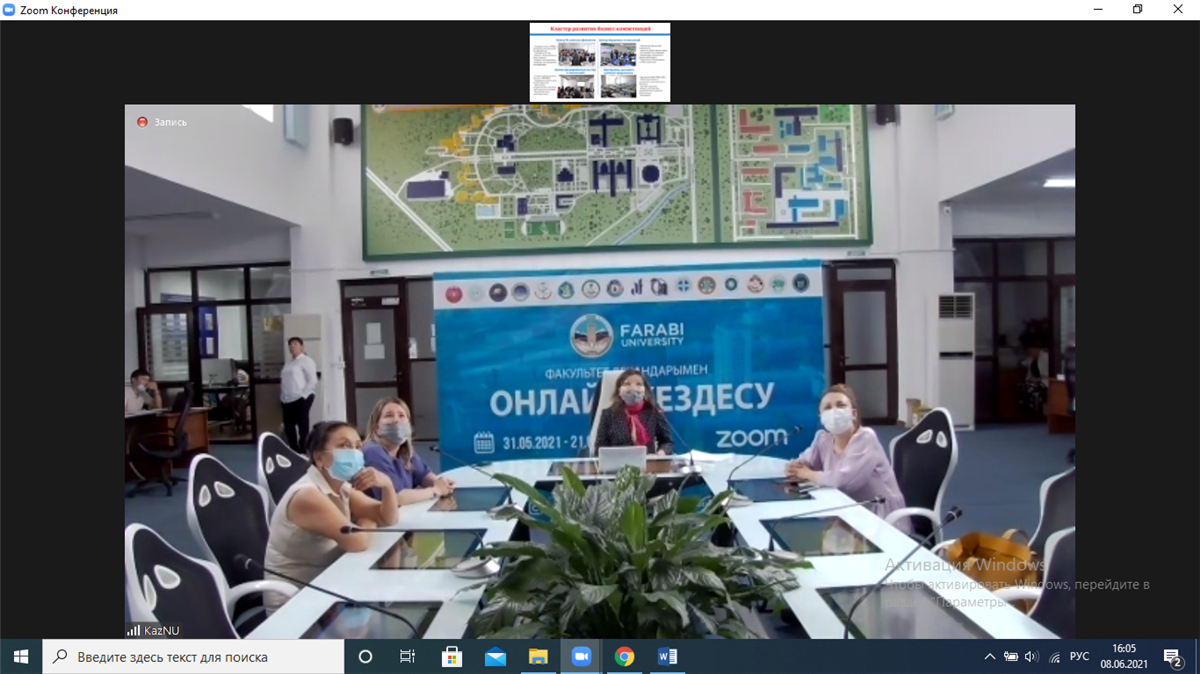 6/8/2021On June 8, 2021, the Dean of the Higher School of Economics and Business, Doctor of Economics, Acting Professor Rimma Sagiyeva Kalymbekovna held an online meeting with applicants. The meeting was attended by the senior staff of the faculty, heads of departments, who answered the questions of the applicants. They discussed the rules for applying for bachelor's, master's and doctoral programs, the specifics of educational programs at the faculty, student life, and much more.