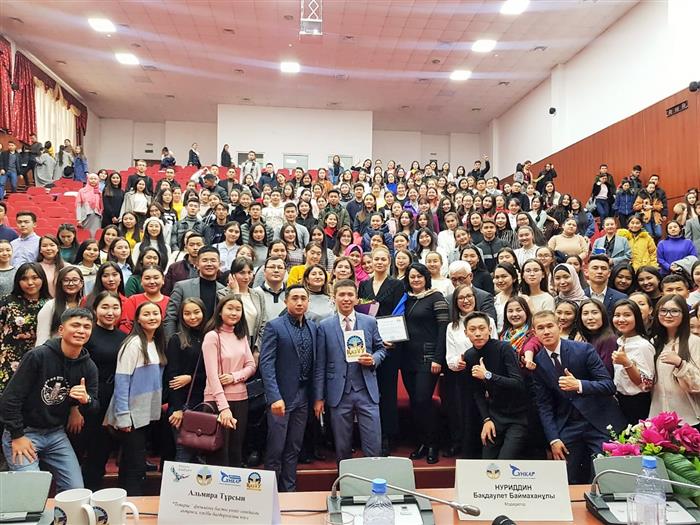 Within the framework of the project “Rukhani Zhangyru” and “Year of Youth”, the Department of Economics together with the union of students and graduate students “Sunkar” organized a meeting with actress Almira Tursyn, who played the main role in the film “Tomiris”