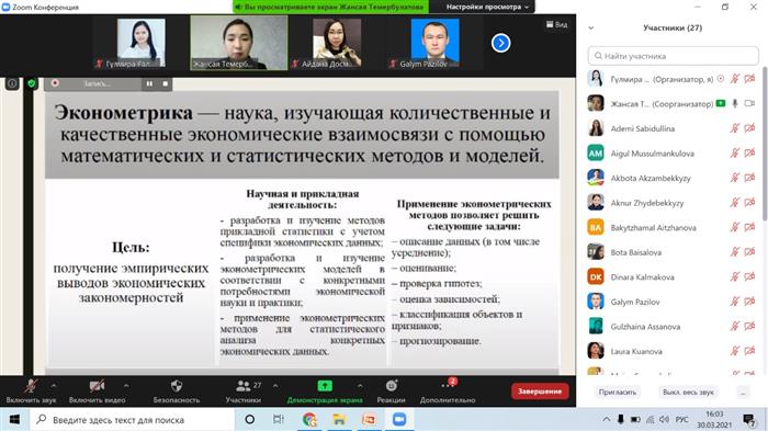 On March 30, 2021, the Higher School of Economics and Business hosted an online seminar organized by the Young Scientists Council on the topic: "Using economic and mathematical methods for data analysis".