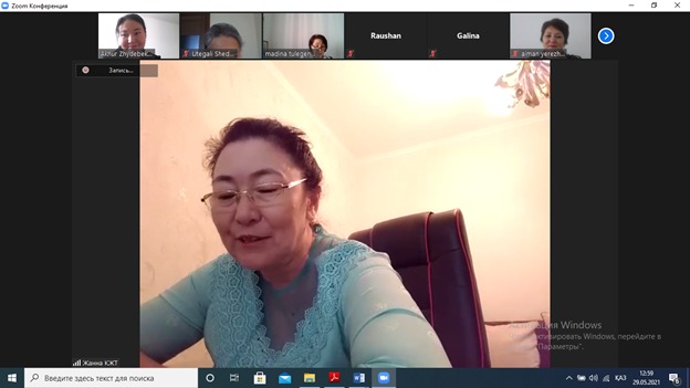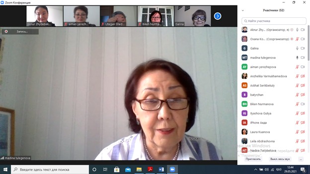 Graduates and participants of the Round Table joined with congratulations in the online format with speeches at will: Tulegenova M.S. (1980 onwards), Spanov M.U. (1989 onwards), Kozhamkulova Zh.T. (1989 onwards), Baimukhanova S.B., Daulieva G.R. (1995 onwards), Bimendieva L.A., Serikbekuly A. (2005 onwards), Zhunisova G.E. (2010 onwards), Kuandyk J. (2018 onwards).