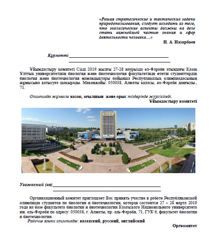 Dear Adil Erezhepovich, you are at one of the noble stages of human life – at the age of 70 years. We hope that your service to the country and the education of the future generations will be continued furtherly.