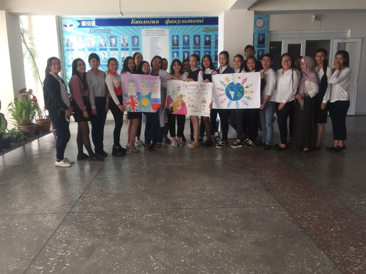 Curator-adviser of the department of biotechnology Zhuniszhan A.Zh. together with the supervisory groups BT17-15, BT17-16 held the event on the day of language "Өзге тілдің бәрін біл өз тіліңіді құрметте".