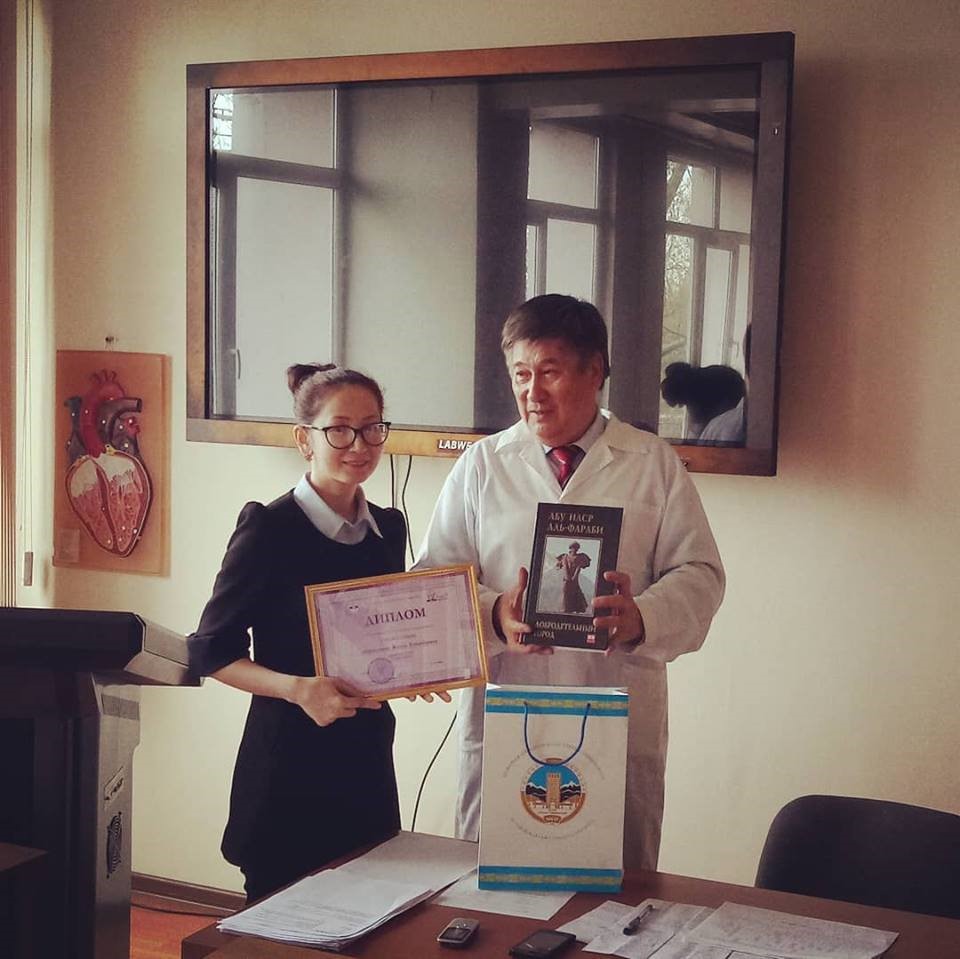 Congratulations to senior lecturer of the Department of Biophysics and Biomedicine PhD Zhanna Abdrasulova with a victory in the competition "Best young scientist of the KazNU -2018»