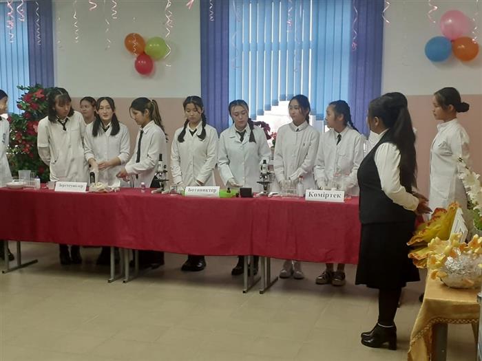 An exhibition of scientific works by Adil Yerezhepov was organized at the school, and the author presented his works to students and teachers. He handed over several books to the school library. At the same time, the seminar participants shared their thoughts on the current state of the education sector, the quality and equipment of practical classes in biology and chemistry in schools. The chief methodologist of the district department of education noted the results and significance of this seminar in improving the qualifications of teachers.