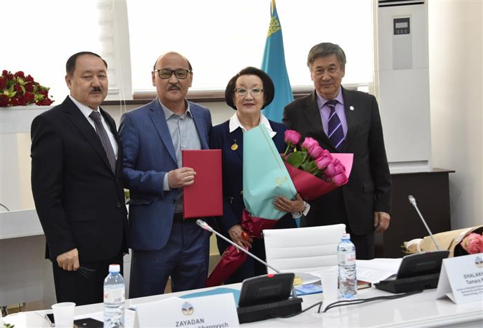 At the event a congratulatory letter from the Chairman of the Board – Rector of Al-Farabi Kazakh National University Zhanseit Tuimebayev was read out with a high assessment of Tamara Shalakhmetova's merits and wishes of success in scientific and pedagogical activities.