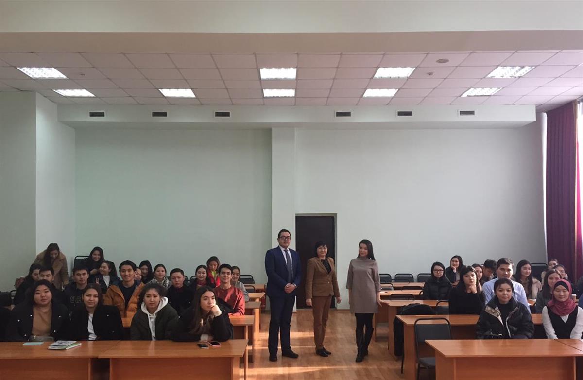 On February 23, 2020 the lecturer of the Department of Diplomatic translation Ualikhanuly A. conducted an educational activity on the theme «No drugs and violence! ».