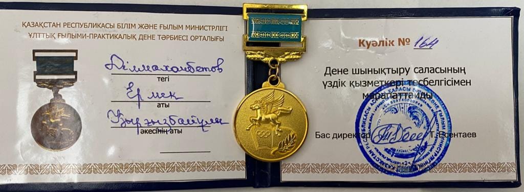 6/15/2021To achieve an early team victory of the national team of Al-Farabi KazNU in X competition! The Summer Universiade of universities of the Republic of Kazakhstan in organizing and holding events is a great merit of the Department of Physical Education and Sports of the Faculty of Medicine and Health. According to the results of the competition, held in 15 sports in Almaty and 6 sports in Turkestan, KazNU team took 14 first places in Almaty and 4 first places in Turkestan. At the Closing Ceremonies of the XI Summer Universiade among the universities of the Republic of Kazakhstan on June 9, 2021, for the early victory of the KazNU team in the Universiade competitions, the head of the Department of Physical Education and Sports, Faculty of Medicine and Health of Al-Farabi KazNU was awarded with the badge "Excellence in Physical Education" Dilmakhanbetov Ermek Kirgizbaevich National Scientific and Practical Center of Physical Culture MES RK.