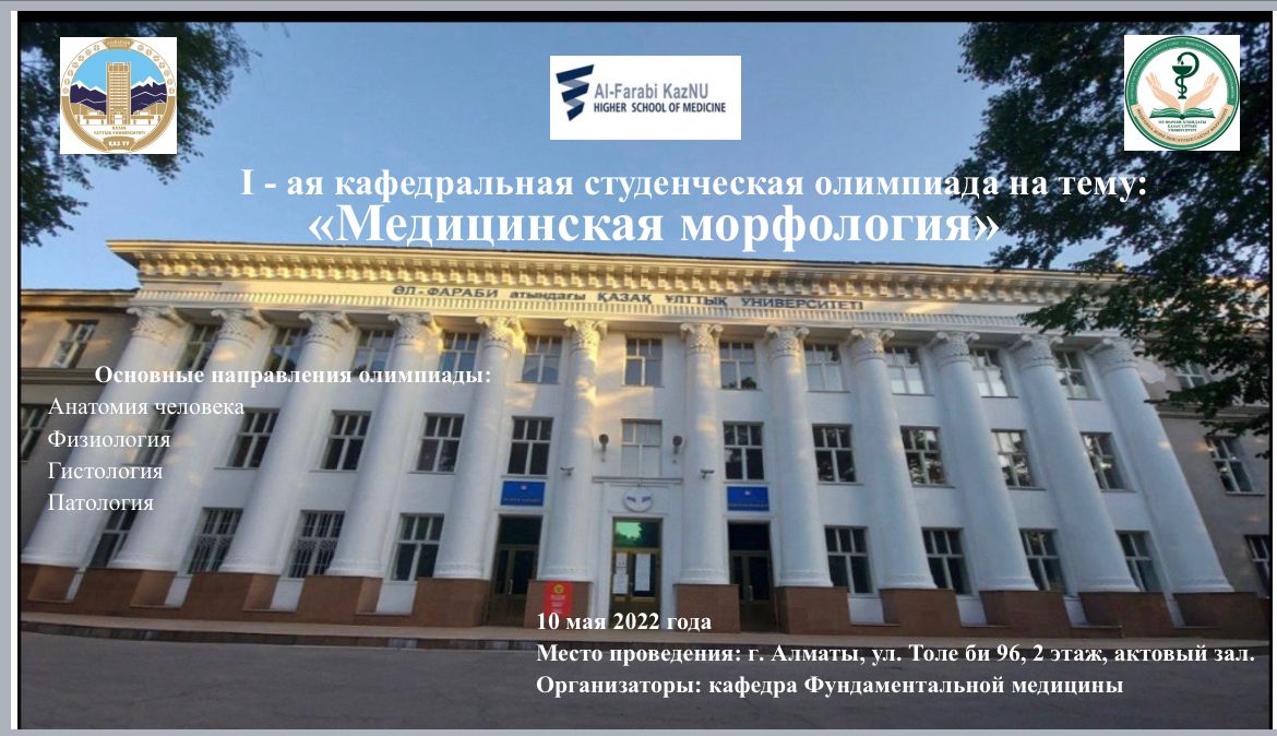 4/30/2022In 2022, the conference took place on April 6-8 in offline and online formats.The Department of Fundamental Medicine at the section "Actual Issues of Medicine, Public Health and Health" was presented by 2nd year students of the Faculty of General Medicine Amanbek Aruzhan and Makhambetova Aziza. The studies were devoted to the study of the role of various factors in primary infertility and the study of cell therapy for spinal cord injury. The works aroused great interest of the audience, interesting questions were asked to the speakers.According to the results of the jury, the work of Aziza Makhambetova "Modern positions of cellular therapy of spinal cord injuries" was highly appreciated and was awarded the third place!