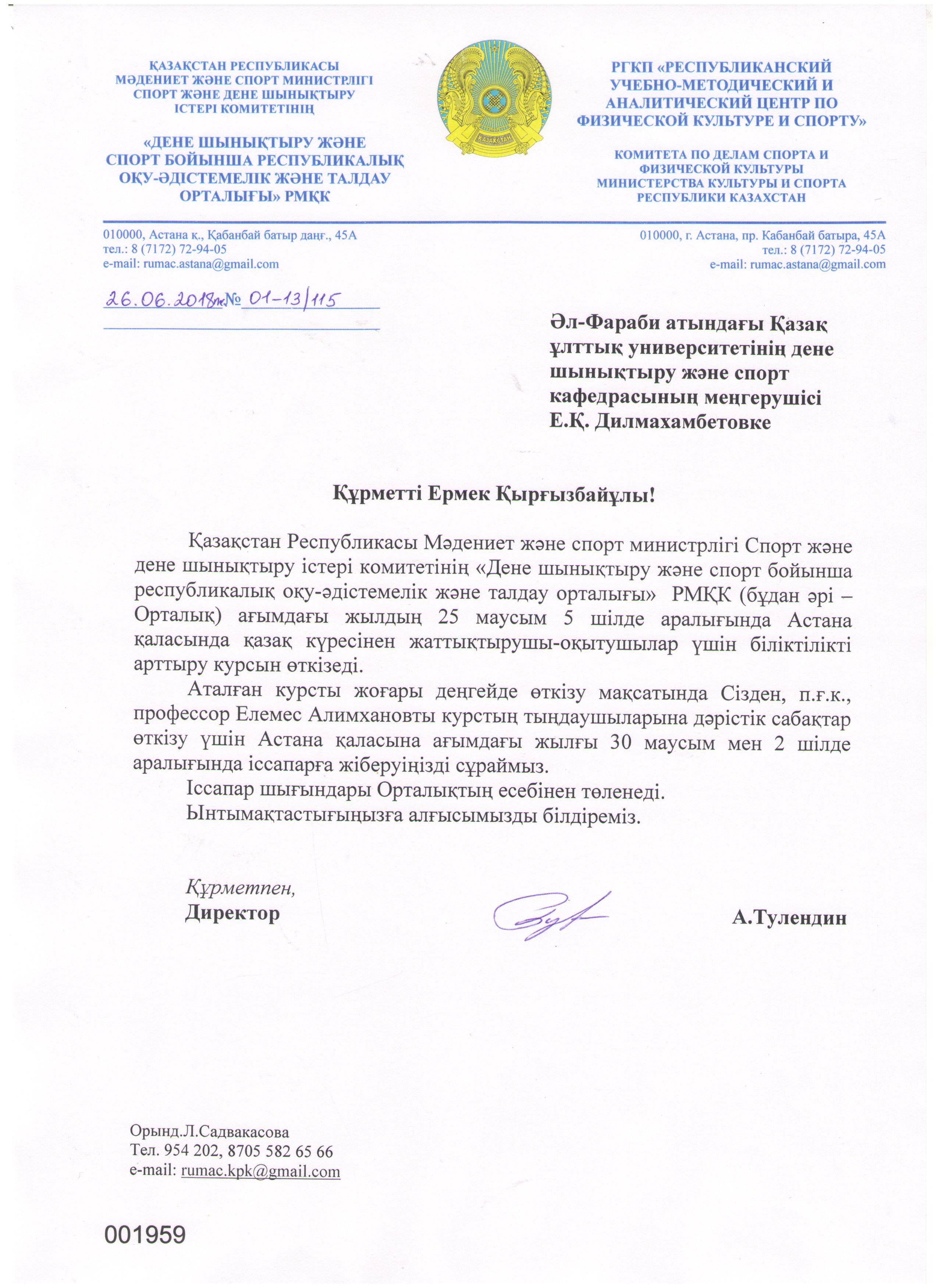 Republican training courses for trainers-teachers for kazaksha kures were held from June 25 to July 5, 2018 in Astana in the building of the republican cycle track "Saryarka". 84 trainers from 14 regions of the country and 3 cities of republican significance took part in the courses. Alimkhanov Elemes Alimkhanovich - Doctor of Pedagogical Sciences, Professor of the Department of Physical Education and Sports, Honored Coach of the Republic of Kazakhstan conducted lectures (72 hours) on the topics: "Improving technical and tactical skills in sports" and "General and special physical training in sports" . A significant part of the audience comes from coaches from the Sports School, the rest are coaches from sports clubs and other sports organizations.