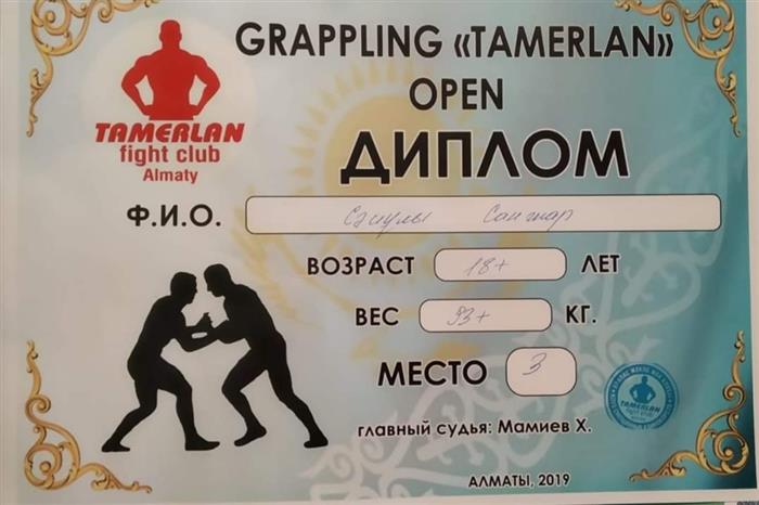 In August 2019, the open TAMERLAN Grappling Championship was held in Almaty. At these competitions, the 4th year student of the Department of Physical Education and Sports, Sәbiұly Sanzhar, took 3rd place in the weight category +93 kg.