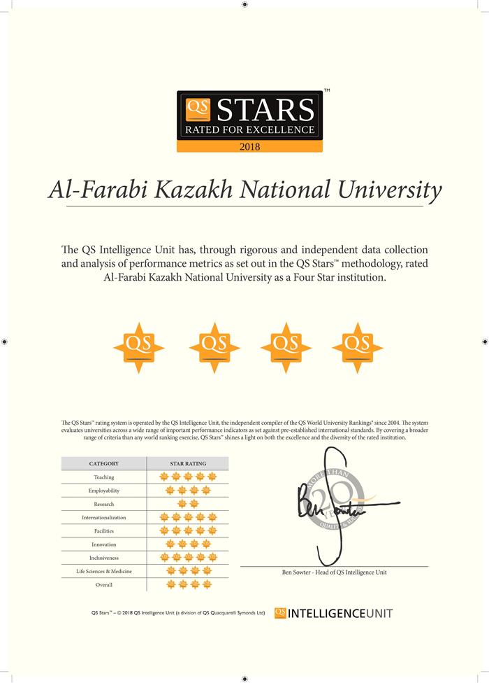 According to the results of QS World University Rankings KazNU became the first university in Kazakhstan