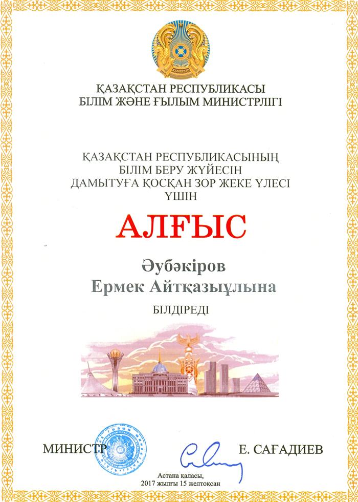 Republican subject Olympiad of the Ministry of Education and Science of the Republic of Kazakhstan