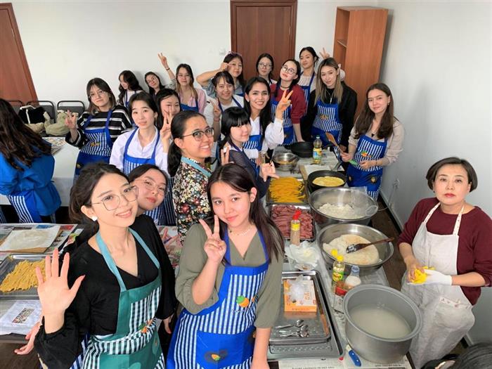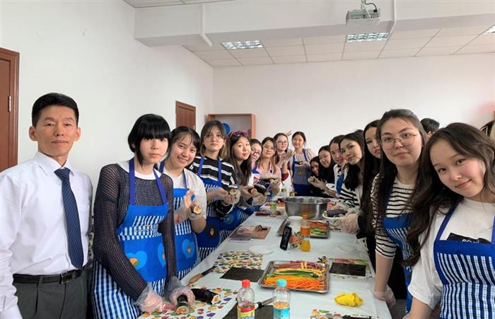 The fourth day of the «Korean Studies Week» was devoted to Korean national cuisine! At the event, which is supported by the Educational Center of the Republic of Korea in Almaty, Mrs. Kim Yong Mi, who came by special invitation, taught our students how to cook the Korean national dish «Kimbap». Korean studies students who have tried Korean national cuisine only in specialized restaurants, this time made their own «Kimbap». We believe that thanks to this, students were able to get acquainted with the culture of the language being studied from a new perspective. We also thank Ms. Kim Yong Mi for coming specially for the «Korean Studies Week» and giving our students an invaluable experience! At this event, the faculty and students of the department demonstrated their solidarity.