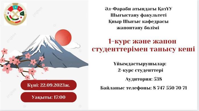 At the beginning of the meeting in the cabinet that had been decorated by students, U. A. Amirbekova, the deputy dean of educational, methodical, and curriculum work, A. B. Abagan, the head of the Department of the Far East, and S. K. Borankulova, an experienced teacher, welcomed the students who had just started their studies of the Japanese language. They sent them their best wishes.