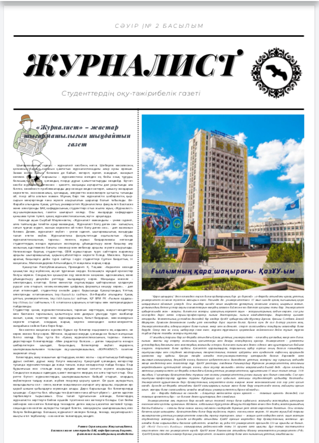 12/17/2021Department of Print and Electronic Media of Al-Farabi Kazakh National University "KAZAKHSTAN AIT!" The fourth traditional competition of future TV and radio announcers is dedicated to the 30th anniversary of the country's independence and the 100th anniversary of Kazakh radio. "THE STORY OF INDEPENDENCE", "THE DEVELOPMENT OF THE CENTURY", "TELEZHEZHIRE", "SPEAK, KAZAKHSTAN!". 8 industry TV channels competed in the nominations.