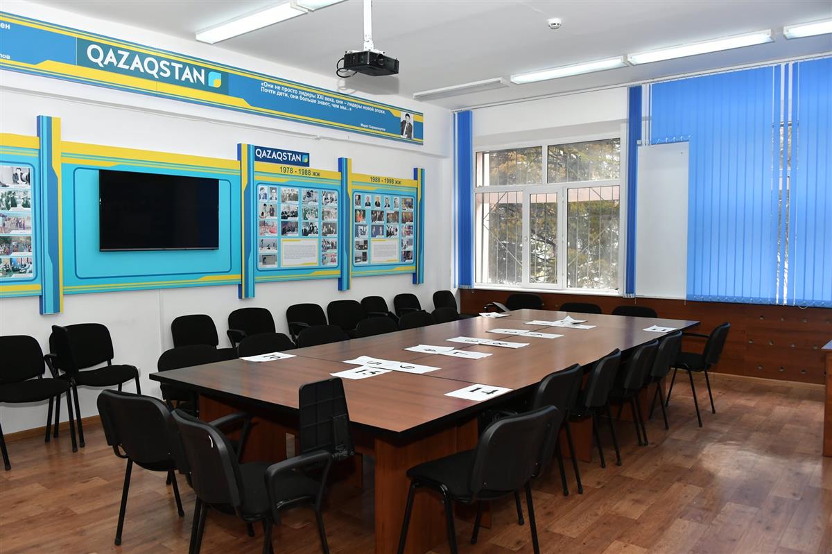 Айтса да, бұл алаңда бұрын керегені тұтас көмкерген салақұлаш сабақ кестелері жабысып тұратын. Біз оларды алып тастадық. Өйткені,Сабақ кестесі қазір әркімнің жекепоштасында да, универ жүйесінде де тұр. Керек кезде содан-ақ көре салады. Ал, әлгі сабақ кестесі жапсырмаларының орнына біз телевизор қойдық. Мұнда үнемі әлемдік, отандық және университеттік ақпараттар, сонымен қатар тарихи танымдық, рухани тағылымдық бейнежазындар үнемі көрсетіліп тұрады.
