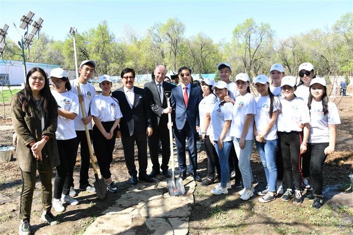 As the First President N.Nazarbayev highlighted: «... the foothills of the Alatau are the historical homeland of apples and tulips» and it is quite symbolic that the holiday began with the planting of an apple orchard. Representatives of foreign Diplomatic Missions and International Organizations accredited in Kazakhstan, and prominent public figures and scholars, veterans and graduates of different years, representatives of the Media, teachers, students and their parents took part in it. They have planted more than 300 saplings of different varieties of apple trees, as well as valuable and decorative trees on campus alleys.
