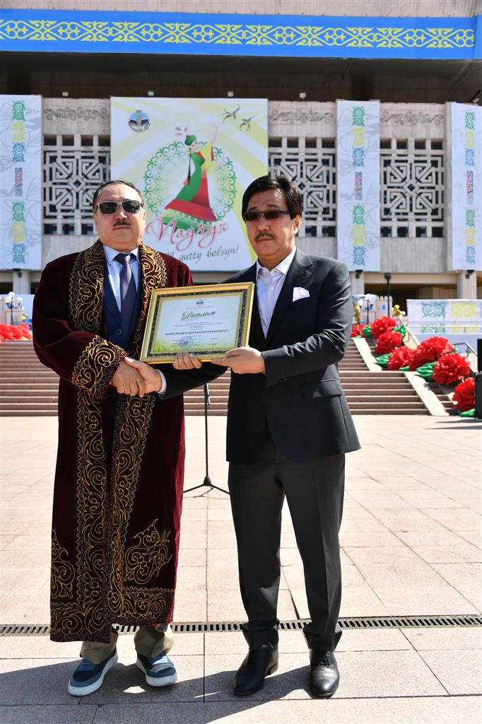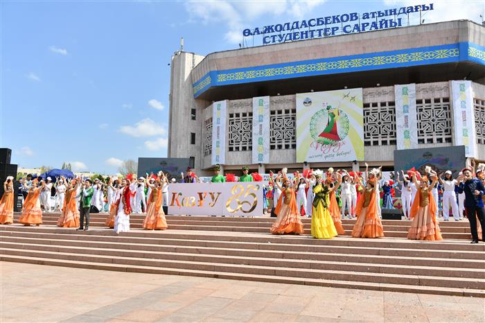 A magnificent and fascinating musical and theatrical performance entitled the «Seven Facets of the Great Steppe», which is based on the article of the same name by the Elbasy, was organized in front of the Students’ Palace. The creative teams of the University have demonstrated the great achievements of the Kazakh steppe: riding culture, an ancient metallurgy and animal style, the Golden Man and the Great Silk Road, Kazakhstan as the cradle of the Turkic world – the Homeland of great thinkers and scientists, apples and tulips. The following Kazakh customs and traditions were presented to the public – «Tusau Kesser», «Shashu», «Kyz Uzatu» and others. The grand performance was ended by caravan procession and the words of blessing by Kydyr-ata!
