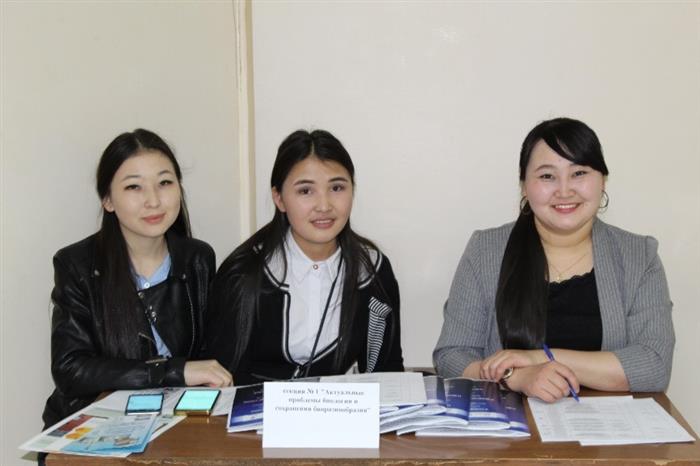 Total for 1 section "Modern Issues in Biology and Bioconservation" received 118 abstracts, including 5 abstracts from K.Zhubanov Aktobe Regional State University, Aktobe, 1 abstract from L.N.Gumilyov Eurasian National University, Astana, 1 thesis from the Kazakh National Women's Teacher Training University, Almaty, 1 thesis from LLP "Scientific production and technical center "Zhalyn", 5 theses from the Institute "Hydrobiology and Ecology", 2 theses from RSE" Institute Biology and Biotechnology of Plants"MES RK, Almaty, 3 theses from «Kazakh Research Institute of Fishery», Almaty, 3 theses from M. Dulaty Taraz State University, 4 theses from Almaty Technological University, 1 thesis from South Kazakhstan Medical Academy, College South Kazakhstan Medical Academy, 2 theses from Abai Kazakh National Pedagogical Universit, 2 theses from the S.Seifullin Kazakh AgroTechnical university, 4 theses from the Sarsen Amanzholov East Kazakhstan State University, 6 abstracts from the Asfendiyarov Kazakh National Medical University, Almaty, 78 abstracts from the Al-Farabi Kazakh National University.