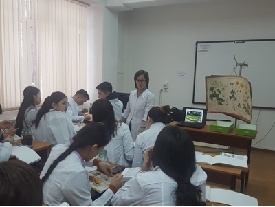 On February 21, 2019, at 11.00 o'clock in the 10th class, a doctoral candidate of the 1st course of the specialty "6D061300-Geobotanika" Childibaeva Asel Zhumagulovna conducted an open laboratory lesson for the 1st year students of the specialty "5В060700-Biology" on the subject "Biodiversity of plants and animals" on the topic "Familiarization with classes dicotyledonous or magnoliopsidov, magnolia, water lily, barberry, buttercup families ”. The head of the Department of Biodiversity and Bioresources, Doctor of Biological Sciences, Acting Professor Kurmanbaeva MS, PhD Dr. Nurmakhanova AS, teachers Aldasugurova Ch.G., Erezhepova N.Sh. Laboratory lesson was held at a high level. The head of the department highly appreciated the systematic explanation of the material, the excellent organization of communication with students, the combination of the past and the new knowledge.