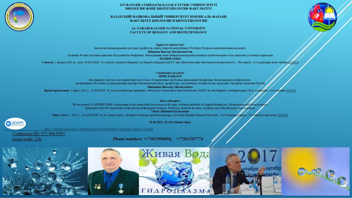 The faculty and students of the Department of Biophysics, Biomedicine and Neuroscience of the Faculty of Biology and Biotechnology of Al-Farabi KazNU congratulate you on your 80th anniversary.