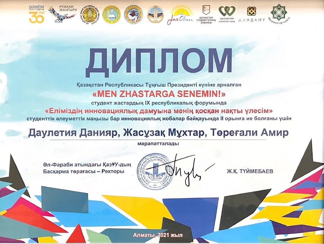 «MEN ZHASTARGA SENEMIN!"2nd place at the IX Republican Forum of student youth. 11/8/2022 Read more >>