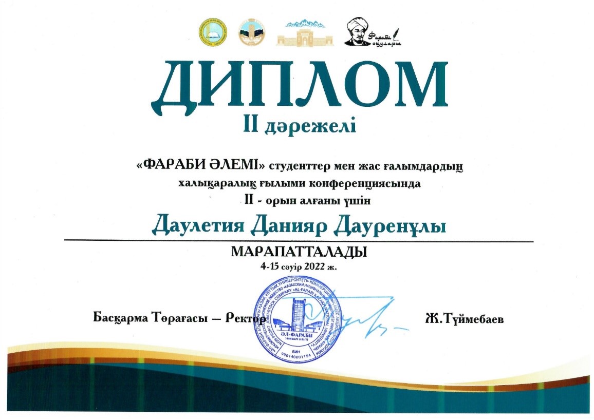2nd place at the international scientific conference of students and young scientists "FARABI ALEMI". 11/4/2022 Read more >>