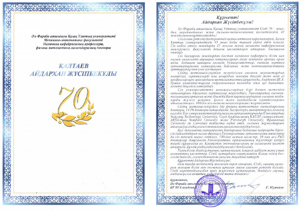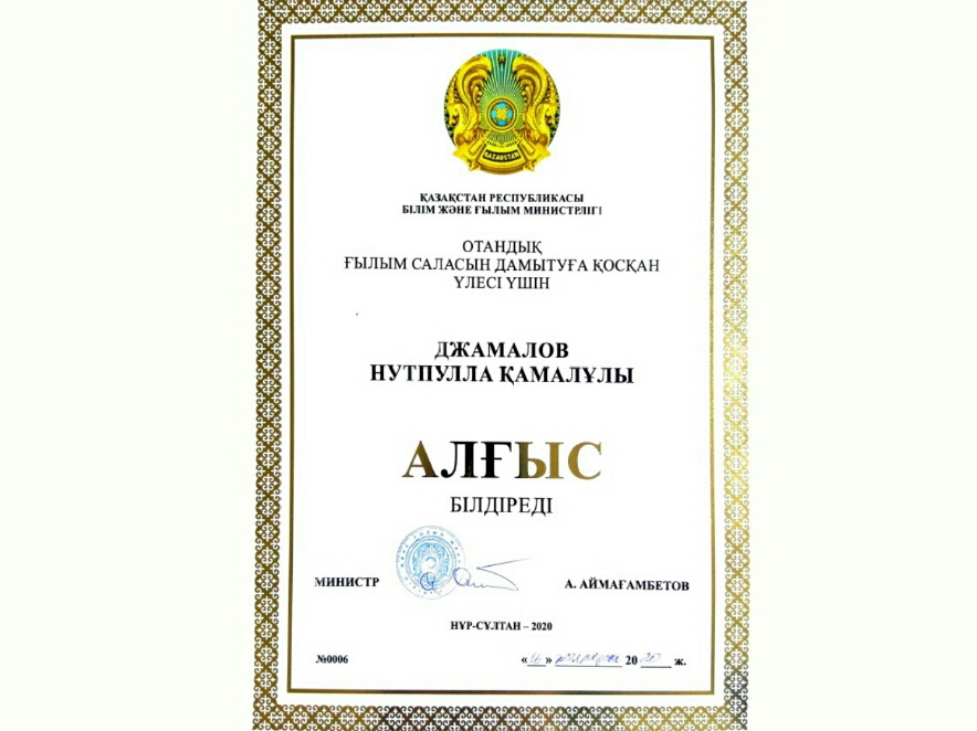 2/15/2021The RSE on REM "Institute of Mechanics and Engineering Science named after Academician Dzholdasbekov" donated to the Department of Mechanics the textbook of Academician U.A. Dzholdasbekova “Zholdasbekov Ө.A., Akhmetov A.Қ. Teoryaly mechanica esepter zhinagi. Oқu құraly. - Almaty. "Gylym" baspa ortalygy, 2003. - 394 bet ", in the amount of 64 copies, with a total cost of 67840 tenge. We express our deep gratitude to the Director General of the Institute Tuleshov for his gratuitous help in providing the Department of Mechanics with books