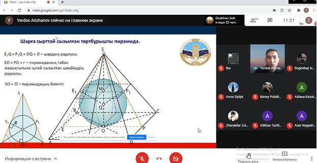 During a four-week pedagogical practice, experienced teachers of the Republican Physics and Mathematics School taught students the professional secrets of teaching. From the Department of Mechanics, pedagogical practice was led by Ph.D., Associate Professor A.K. Tulepbergenov.