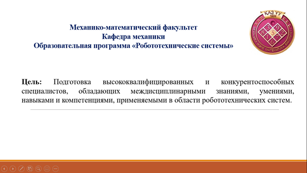 As part of pedagogical practice, on April 27, 2021, an educational lesson was held in the form of career guidance work on the Zoom platform (videoconference) by a 1st year doctoral student of the EP "Robotic Systems" of the Department of Mechanics of the Faculty of Mechanics and Mathematics of KazNU named after al-Farabi Dogalakov D.A. among students of 10-11 grades of KSU "School-lyceum №131 named after B. Momyshuly", Almaty.