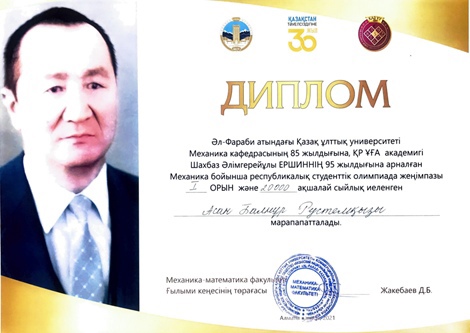 Within the framework of these events, the Republican student Olympiad in Mechanics was held on November 24. The subject Olympiad was attended by 54 students studying in the direction of "mechanics" from universities in different regions of the Republic, and 35 students took part in it. 24 students from Al-Farabi Kazakh National University, 8 students from L. N. Gumilyov Eurasian National University, 3 students from K. I. Satpayev Kazakh National Technical University took part in the Olympiad. The best students won prizes and financial prizes from sponsors.