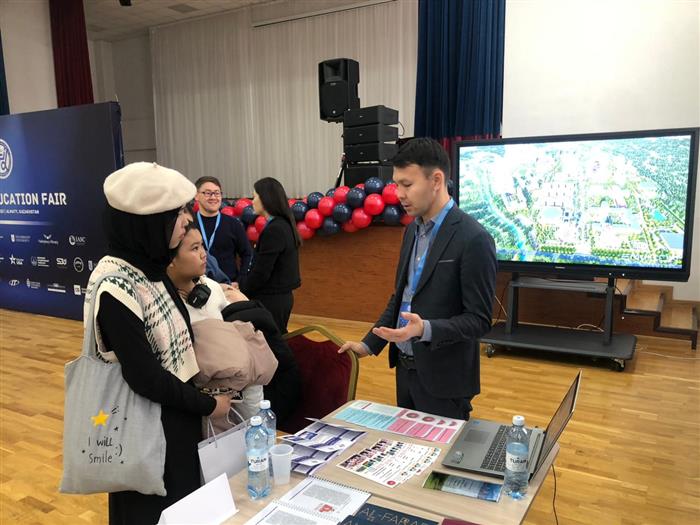The vice Dean on scientific-innovations work and international affairs of the Faculty of Mechanics and Mathematics Doszhan N.S. took part in the exhibition program as a career advisor, who introduced the Al-Farabi Kazakh National University to the students. The students who took part in the exhibition received detailed information about the Faculty of Mechanics and Mathematics and educational programs.