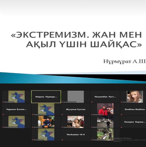 Advisor of the department Nurmurat Aidana held an open curatorial hour with 3rd year students of the specialty automation and control on the topic “extremism. Battle for soul and mind ". 2/2/2021 Read more >>
