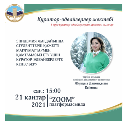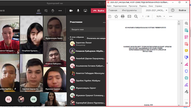 1/26/2021As part of the winter school for curators-advisers, on January 21 at 15.00, an online meeting of all curators of the 1st year of the Al-Farabi Kazakh National University was held.