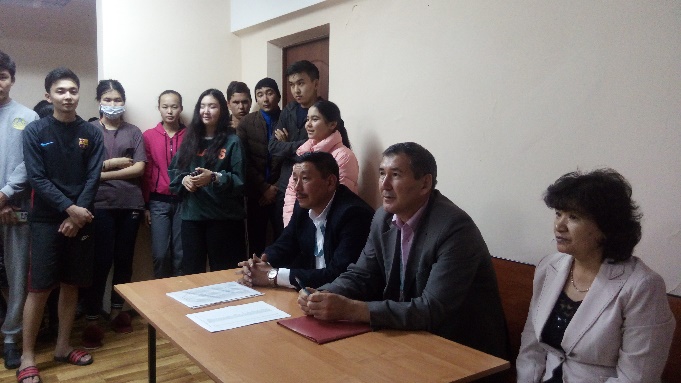 On October 1, 2019, in the dormitory No. 13, the Department of General and Inorganic Chemistry organized an open curatorial hour on the topic “How to spend free time correctly” as part of the Ainalandy Nurlandyr project. The event was attended by R. Tynysbekov and N. Panzarbekov, the head of the department of the Central Statistical Bureau of the Security Center Security Center, as well as 1-3 year students. Several issues were discussed at the event, and students expressed their opinion. Tynysbekov Rustem and Panzarbekov Nurzhan talked about the safety rules in a hostel.
