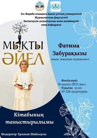 11/11/2022On November 11, Al-Farabi Kazakh National University, Faculty of Journalism, Department of "publishing, editorial and design art" held a master class on the topic "National Book business: competitiveness" with Raisa Sairan, founder of the publishing house "Steppe&World Publishing" and the literary agency "Alghayat". During the meeting, Raisa told the students about the intricacies of the publishing business, about the process of acquiring copyright in the translation of each book before its publication in the Kazakh language, the benefits of reading in the Kazakh language.