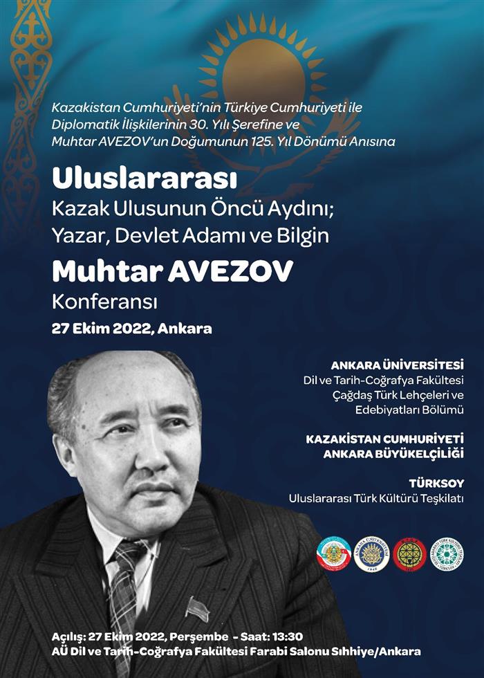 On October 27, 2022, the International scientific conference, devoted to academician M.O. Auezov’s 125th anniversary, the classic of Kazakh literature, a major public and statesman, was held at Ankara University. It was organized by the Embassy of the Republic of Kazakhstan in the Republic of Turkey and Professor F. Sema Barutju Ozonder, the Head of the Department of Modern Turkish Dialects of the Faculty of Language, History and Geography of Ankara University, Doctor of Philology, Professor. The leading scholars studying M.O. Auezov's creativity, PhD students took part in the conference. Ambassador of Kazakhstan, Sapiyev Yerkebulan Onalbekuly, Deputy Secretary General of TURKSOY, Doctor, Associate Professor Bilal Chakydzhi made a welcoming speech.