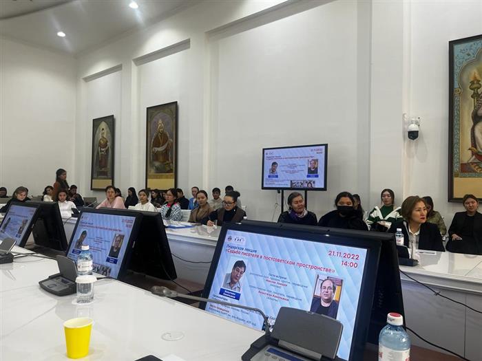 The writers, the teachers of the literary departments of universities, the students, the master’s degree students and the PhD students of Al-Farabi Kazakh National University took part in the given event. The event was held in a hybrid format, so the audience from other cities also had the opportunity to participate. The students and the teachers of the Kazakhstan branch of Lomonosov Moscow State University, E. Buketov Karaganda State University and from other universities showed a huge interest in the meeting.