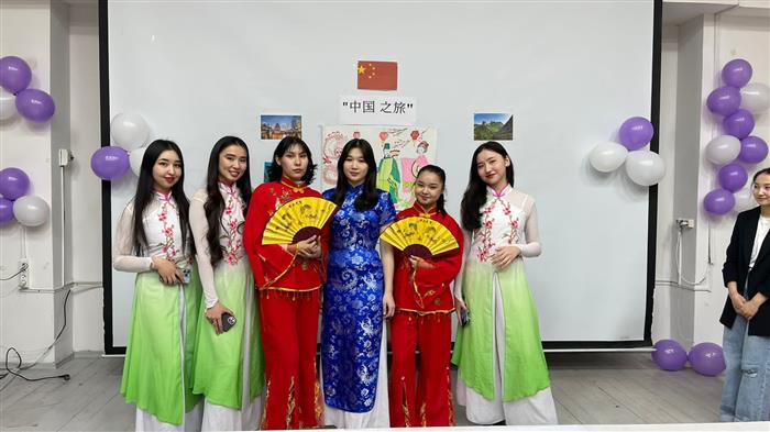On February 17, 2023, the senior teacher of the Department of Turkology and Language Theory of the Faculty of Philology of Al – Farabi KazNU, Sabira Matai and the students studying in the specialty: "Two Foreign Languages" organized the educational event on the topic: « Journey to China».The main purpose of the event is to introduce students to China culture and traditions, to sparkle their interest in learning Chinese and to instill in them love to their future profession. The students made the vivid presentations about the culture, the traditions, the geography and the history of China. Two foreign students performed the national Chinese dance a dance through which it was possible to get acquianted more closely with the culture of China. The students also tolb about the Chinese calendar. They sang the songs of the Chinese people with a thousand-year history supported by the huge applauds of the audience. The Department of Turkology and Language Theory trains not only the specialists of Chinese Language but also specialists majoring in French, Turkish, German.