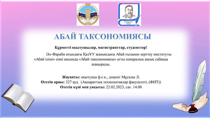 Abai Research Institute of Al-Farabi KazNU invite you to the interdisciplinary demo class on the topic: “Abai Taxnonomy” within the frameworks of the discipline: “Abai’a teachings”