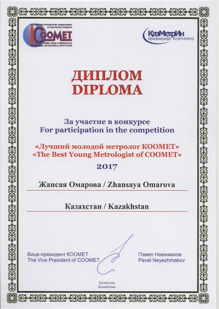 "Үздік жас метролог КООМЕТ" 2 year undergraduates Omarova Zhansaya, 1 course undergraduates Userbaev Madina